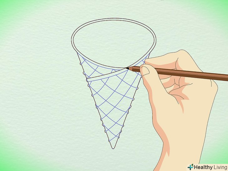 Подумайте про те, як виглядає стаканчик. він покритий перехресними лініями, як вафля. Почніть малювати перехресні лінії.