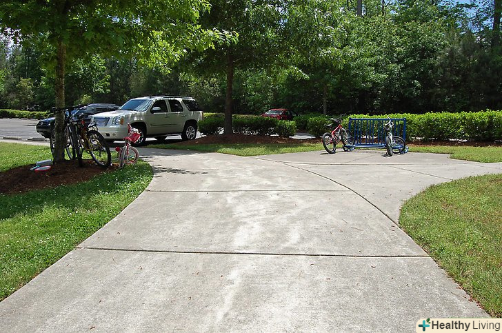 Причепіть велосипед до чогось міцного.переконайтеся, що це нерухомий об'єкт, наприклад велосипедний якір або перила. Багато речей, які виглядають твердими, насправді ненадійні, так що краще перевірити їх на міцність. Якщо ви пристібаєте велосипед до стовпчика, то переконайтеся, що він досить високий, хоча б 4 метри, щоб не було можливо легко зняти його через верх.