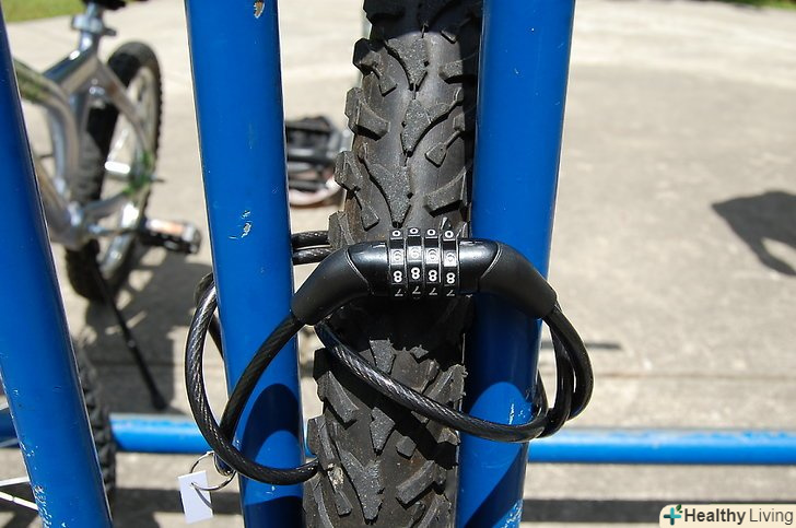- Кабельнй замок можна закріпити петлею навколо велосипеда і навколо більшого за розміром об'єкта такого як дерево або стовп. Знайдіть замок з більш товстим тросом з сплетених металевих ниток, перепиляти його займе у злодія більше часу. Однак будь-який кабельний замок може бути перекушений болторізом за кілька секунд. У районах з високим рівнем крадіжки такі замки добре використовувати для для прикріплення переднього колеса до рами.