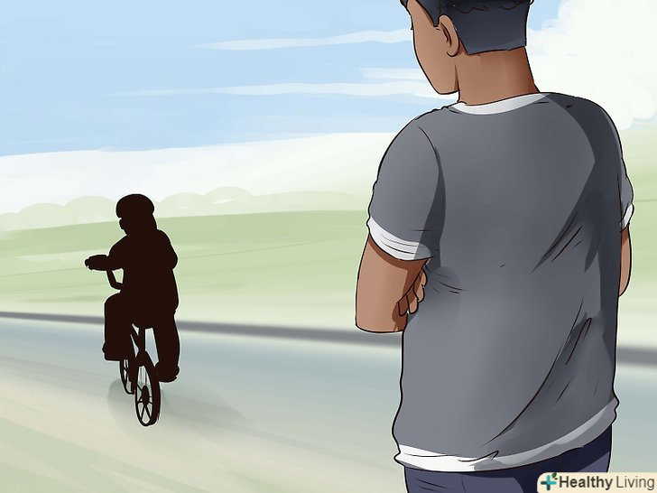 Будьте позитивно налаштовані.Залишайтеся веселим і позитивним в той час, як навчаєте дитину кататися без коліс-стабілізаторів. Хваліть його за успіхи, а коли він зможе самостійно їздити, скажіть, що пишаєтеся ним. Не сваріть дитину за помилки і не змушуйте робити його те, чого він ще боїться. Дитина повинна отримувати задоволення від катання, і якщо це станеться, він буде готовий продовжувати вчитися навіть без вашої допомоги.- Багато інформаційних ресурсів для батьків рекомендують використовувати позитивний настрій і заохочувати дитину за хорошу поведінку. Дитина навчиться послуху, якщо буде отримувати любов і увагу, які так важливі для дітей[5]