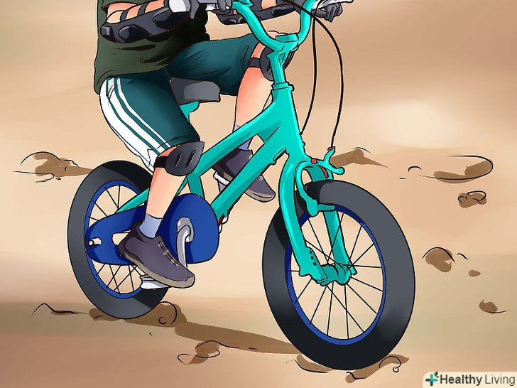 Спробуйте зробити стрибок. коли ви зможете впевнено кататися на велосипеді при будь-якій швидкості і в будь-якій місцевості, спробуйте вивчити кілька простих трюків! Наприклад, ви можете зробити стрибок. Привстаньте на повільній швидкості, переведіть свою вагу на кермо і спробуйте як би відштовхнутися від землі. Піднявшись в повітря, нахиліться вперед так, щоб обидва колеса могли стати на землю. Коли у вас почне добре виходити, спробуйте зробити невеликий стрибок з бордюру не зупиняючись.- Не турбуйтеся, якщо відразу не вийде або ви кілька разів впадете, намагаючись вивчити цей або який-небудь інший трюк. Незначні подряпини і синці є частиною процесу навчання. Неможливо навчитися, не здійснюючи помилок!