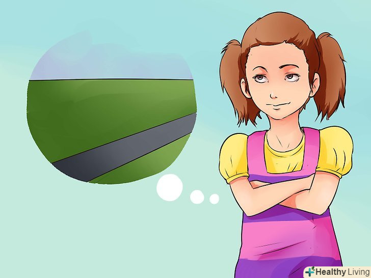 Відведіть вашу дитину на відкриту місцевість з пологим схилом.незважаючи на те що кожна дитина навчається по-різному, для багатьох дітей одним з найкращих варіантів буде повільний спуск по довгому пологому схилу. Повільний, з контрольованою швидкістю, спуск дозволить дитині відчувати себе комфортно, звикаючи до думки, що кататися без коліс-стабілізаторів майже так само легко, як і з ними.- Покрита травою земля стане відмінним варіантом. Трава не дозволить дитині набрати високу швидкість, а досвід від падінь на м'яку траву буде менш стресовим для нього. Адже найменше ви хочете, щоб невдала спроба і страх Катання без коліс-стабілізаторів відняли у дитини бажання далі вчитися.