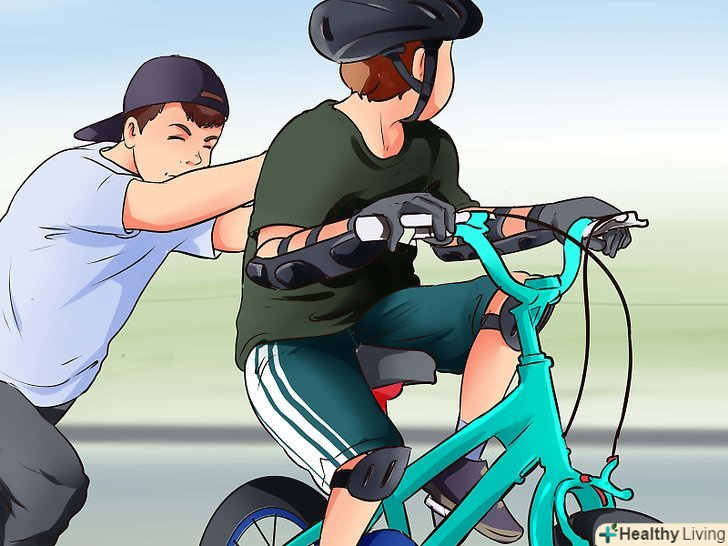 Попросіть друга або батька підштовхнути вас, якщо потрібна допомога.набагато простіше навчитися їздити без коліс-стабілізаторів, якщо поруч буде хтось, хто зможе допомогти. Попросіть батька, друга, який навчився кататися, брата або сестру тримати вас за руку, якщо вийде. Ці люди можуть спростити ваше навчання різними способами, але найкращим варіантом стане їзда поруч, тримаючи вас за руку, поки ви самостійно крутите педалі.