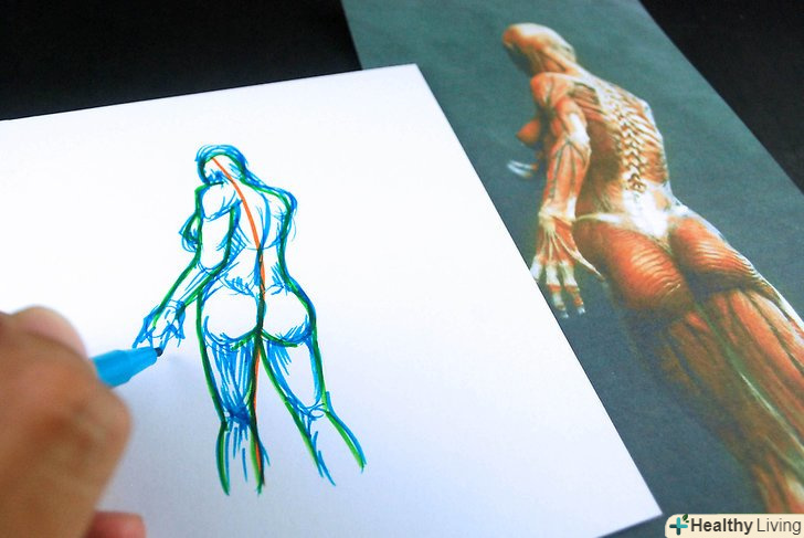 Малюйте контурними лініями. коли ви малюєте тіло людини, то його кінцівки, торс і голову можна намалювати контурними лініями. В якійсь мірі, ці лінії-контур тіла людини, але вони не обов'язково повинні передавати всі анатомічні особливості. Ви малюєте тіло простими, одиночними, контурними лініями, і через це малюнок виходить двомірним. Через те, що ви намагаєтеся швидко відобразити суть фігури, у вас немає часу на те, щоб детально опрацювати окремі частини тіла. Контурні лінії просто показують, що ці частини тіла існують, і дають лише деяке уявлення про їх положення. Малюйте контурними лініями. коли ви малюєте тіло людини, то його кінцівки, торс і голову можна намалювати контурними лініями. В якійсь мірі, ці лінії-контур тіла людини, але вони не обов'язково повинні передавати всі анатомічні особливості. Ви малюєте тіло простими, одиночними, контурними лініями, і через це малюнок виходить двомірним. Через те, що ви намагаєтеся швидко відобразити суть фігури, у вас немає часу на те, щоб детально опрацювати окремі частини тіла. Контурні лінії просто показують, що ці частини тіла існують, і дають лише деяке уявлення про їх положення.