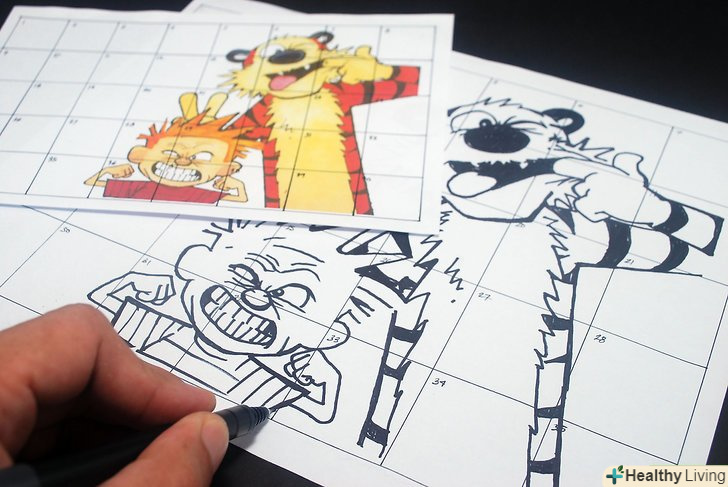 - Зверніть особливу увагу на ділянки, де лінії переходять в інші квадрати. Ці невеликі неточності можуть швидко накопичитися, що призводить до Кривого відображення того, що ви копіюєте. Це помітно по зображенню рота Кельвіна, де художник почав трохи поспішати.