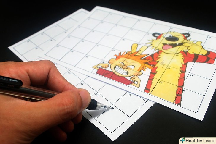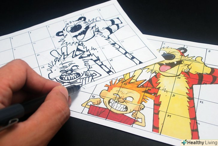 Завершіть малюнок. він може бути настільки точним, наскільки ви хочете. Для малюнків, що мають однаковий розмір (1: 1), можна використовувати світловий короб (лайтбокс). Однак якщо ви робите плакат, спробуйте зробити менші квадрати.- Наприклад, якщо ви вибираєте зображення і робите його в два рази більше оригіналу (2:1), то можете зробити квадрати розміром 2,5 см на вихідному зображенні і квадрати розміром 5 см на великому ватмані. Також, можна зробити квадрати розміром 1,25 см на вихідному малюнку, а потім квадрати мають розмір 2,5 см на ватмані. Важливо зберегти все в масштабі.
