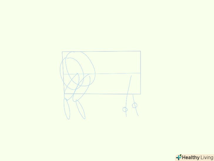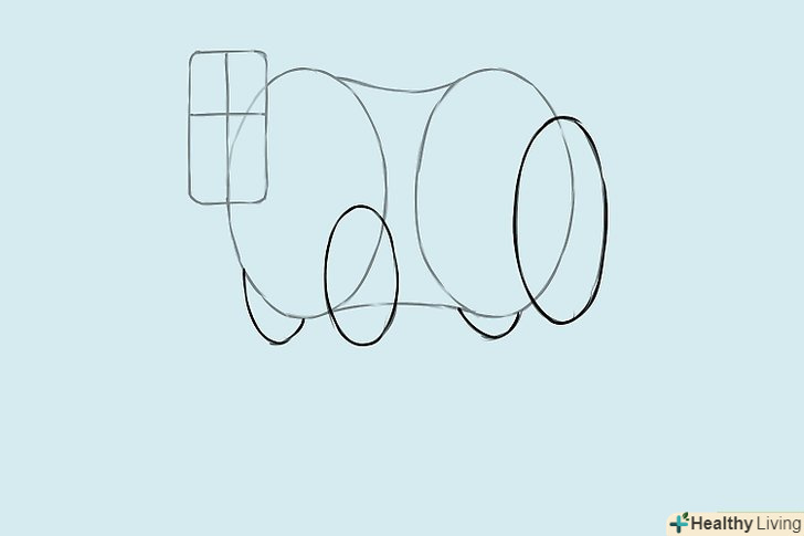 Додайте верхні частини передніх ніг у вигляді невеликих вертикальних овалів, а для задніх ніг використовуйте великі овали. Додайте верхні частини передніх ніг у вигляді невеликих вертикальних овалів, а для задніх ніг використовуйте великі овали.