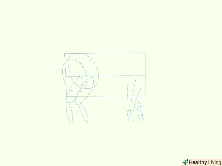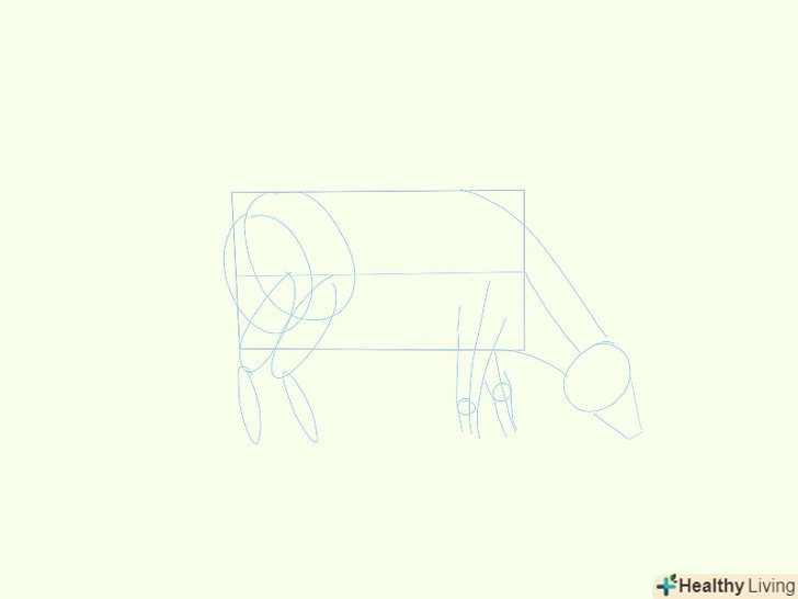 Виконайте начерк задньої ноги, намалювавши три взаємопов'язаних і послідовно зменшуються овалу. Виконайте начерк задньої ноги, намалювавши три взаємопов'язаних і послідовно зменшуються овалу.
