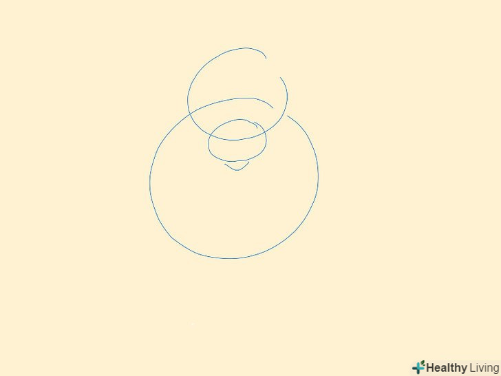 Зробіть начерк голови і тіла у вигляді маленького і великого кіл. маленьке коло буде позначати голову, а великий — тіло. Кола повинні перетинатися так, щоб маленький коло голови заходив всередину великого кола тіла. Зробіть начерк голови і тіла у вигляді маленького і великого кіл. маленьке коло буде позначати голову, а великий — тіло. Кола повинні перетинатися так, щоб маленький коло голови заходив всередину великого кола тіла.