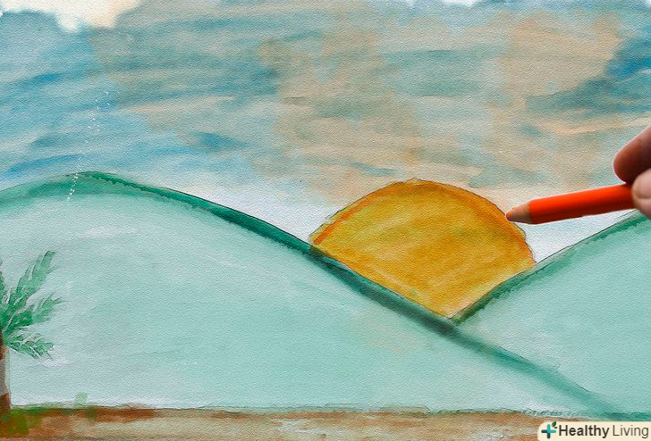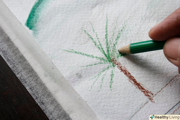 Додайте деталі за допомогою акварельного олівця. при бажанні можна доповнити малюнок деталями після того, як він висохне. Можна виразніше позначити кордону і додати дрібні деталі, а можна залишити малюнок як є! [16] Додайте деталі за допомогою акварельного олівця. при бажанні можна доповнити малюнок деталями після того, як він висохне. Можна виразніше позначити кордону і додати дрібні деталі, а можна залишити малюнок як є! [16]- Якщо ви хочете зробити деталі яскравіше, злегка занурте кінчик акварельного олівця в воду, перш ніж малювати їм.