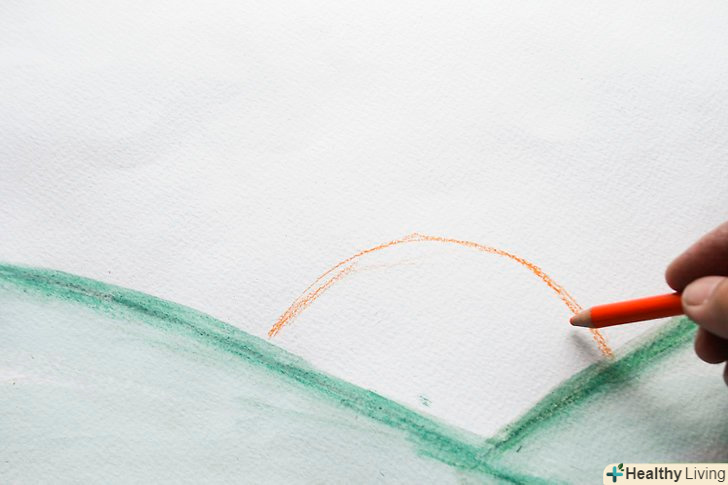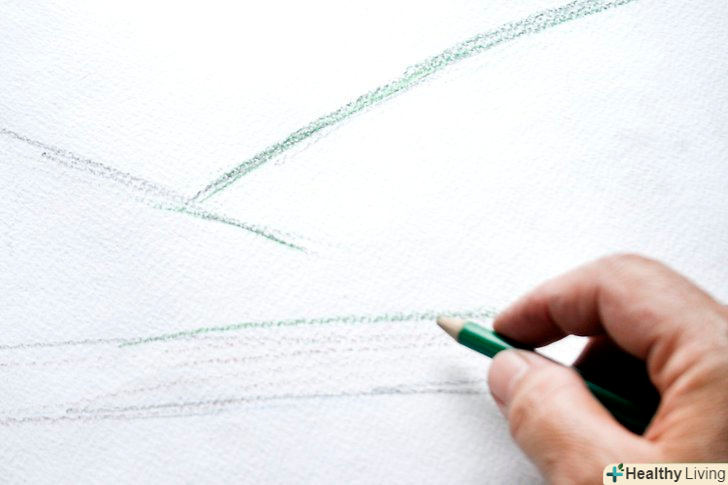 Додайте до начерку основні кольори. після того як ви зробите чорновий начерк, його можна заповнити основними кольорами. Не користуйтеся акварельними олівцями так само, як звичайними, і не зафарбовуйте начерк повністю. Замість цього наносите кольору в загальних рисах і напрямках і залишайте між ними незафарбовані прогалини. [3] Додайте до начерку основні кольори. після того як ви зробите чорновий начерк, його можна заповнити основними кольорами. Не користуйтеся акварельними олівцями так само, як звичайними, і не зафарбовуйте начерк повністю. Замість цього наносите кольору в загальних рисах і напрямках і залишайте між ними незафарбовані прогалини. [3]- Хоча на даному етапі немає необхідності занадто деталізувати малюнок, будьте уважні і наносите штрихи основних фарб в правильних напрямках. Після того як ви додасте воду, ці напрямки будуть все ще помітні. [4]