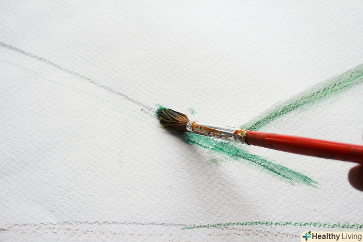 Обережно нанесіть воду на малюнок. плавними мазками кисті розповсюдите акварель по малюнку. При цьому повторюйте форму і напрямок попередніх олівцевих мазків. Це нагадує малювання водяними фарбами, але ви вмочаєте кисть не в фарбу, яка в даному випадку вже на малюнку, а в просту воду. Як тільки кисть висохне, знову занурте її в воду. [7] Обережно нанесіть воду на малюнок. плавними мазками кисті розповсюдите акварель по малюнку. При цьому повторюйте форму і напрямок попередніх олівцевих мазків. Це нагадує малювання водяними фарбами, але ви вмочаєте кисть не в фарбу, яка в даному випадку вже на малюнку, а в просту воду. Як тільки кисть висохне, знову занурте її в воду. [7]