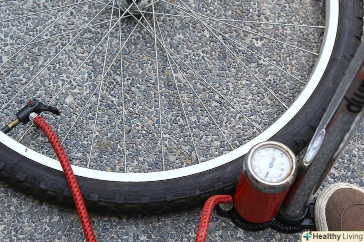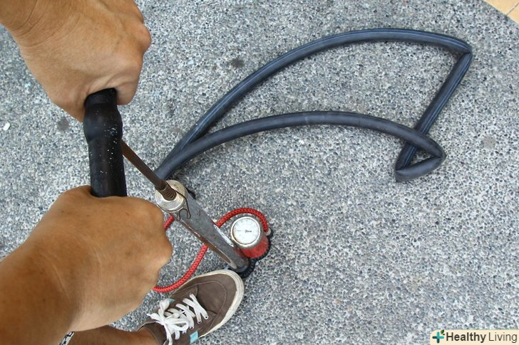 Поступово накачайте камеру, щоб вона" сіла " на місце.далі, візьміть ручний або автоматичний насос і почніть накачувати камеру. Качайте не надто різко, щоб камера могла розподілитися і "сісти" на місце в шині. Коли ви повністю накачаєте камеру, спробуйте стиснути шину, перевіривши її щільність. Потім залиште велосипед на пару хвилин і потім стисніть шину знову. Якщо вона така ж тверда, як і при першій перевірці - ви готові продовжити поїздку!- Якщо ви боїтеся неправильно встановити камеру в шині, можете спокійно накачати камеру повністю до того як встановлювати шину на колесо. Але, майте на увазі, що одягнути шину так буде складніше.