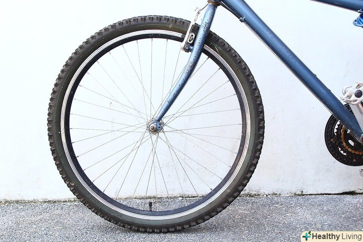 Зніміть колесо з велосипеда.перше, що потрібно зробити в разі проколу колеса - зняти пошкоджене колесо. Огляньте колесо збоку, в центрі, де сходяться спиці. Якщо у вас колесо на ексцентриці (це схоже на невеликий важіль), підніміть його і обертайте проти годинникової стрілки, щоб послабити затиск. Потім вимкніть гальма, відсуньте гальмівні колодки від обода (якщо у вас ободні гальма) і зніміть колесо.- Якщо у вас прокол заднього колеса, вам доведеться мати справу ще й з ланцюгом і перемикачем швидкостей. Послабте ланцюг, переключившись на найменші зірочки. Послабте Затискач, відкрутивши ексцентрик або гайку, що утримує колесо. При необхідності, руками відведіть задній перемикач ("лапка" з маленькими роликами, через які проходить ланцюг) і приберіть ланцюг, якщо вона заважає вам зняти колесо.