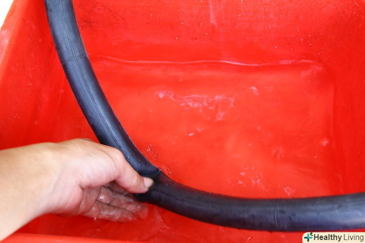 Знайдіть місце проколу.знявши шину, витягніть здулася камеру і визначте місце проколу. Це можна зробити різними способами і деякі з них перераховані нижче:- Накачайте камеру і спробуйте візуально знайти отвір (або отвори) в гумовій поверхні.