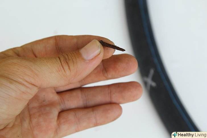 Вийміть з проколу сторонні об'єкти.знайшовши прокол, перевірте, що могло стати його причиною: осколок скла, гострий камінь і т.д., або ж Дірка з'явилася внаслідок защипування - прокол буде схожий на слід зміїного укусу, але ніяких сторонніх об'єктів не буде.[2] уважно огляньте виворіт шини і обід - чи немає на них виступаючих (стирчать) предметів, і, якщо є - видаліть їх. Адже вам би не хотілося роздобути новий прокол на тому ж місці через те, що ви прогледіли причину першого проколу?