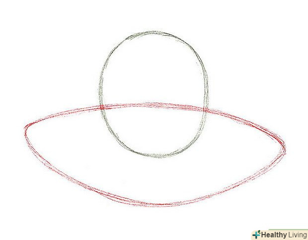 Поверх кола намалюйте овал у формі мигдалини-основу для облямівки капелюха.