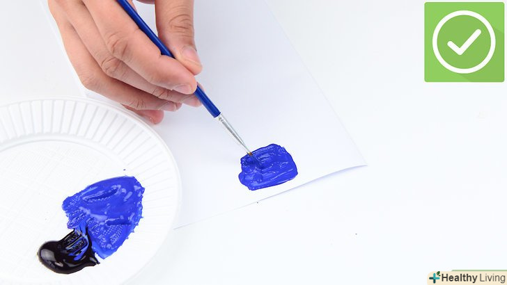 Перевірте, який колір у вас вийшов. багато фарби, в тому числі акрилова, після висихання темніють. Акрилові фарби висихають швидко, тому Ви зможете легко перевірити отриманий відтінок, завдавши невелику кількість фарби на полотно і давши йому висохнути. Це повинно зайняти не більше 15 хвилин. Коли фарба висохне, ви побачите кінцевий колір і вирішите, чи підійде він для вашої роботи. [12]- Якщо вам не подобається кінцевий колір, поверніться до палітри і скорегуйте його, додавши більше синього і фіолетового.