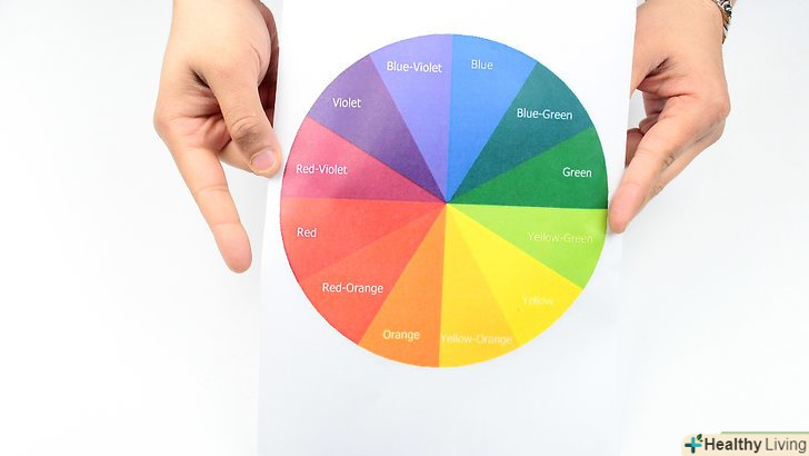 Роздрукуйте колірне коло. на колірному колі представлені основні кольори (червоний, жовтий і синій), а також всі інші, які виходять за рахунок їх змішування. Є варіанти колірного кола, на які нанесені тільки основні і вторинні кольори. Вам краще вибрати більш докладний колірний круг, що включає різноманітні тони і відтінки. [5]