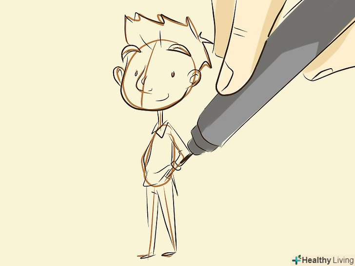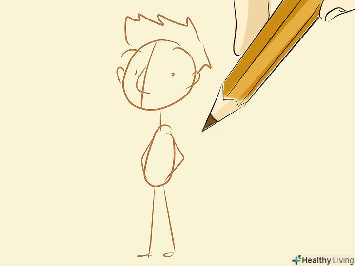Зробіть начерк малюнка. перше, що потрібно зробити, коли ви малюєте мультики, це зробити начерк вашого героя за допомогою НВ олівця. Начерк повинен включати в себе форму тіла героя, його одяг і пози, виразу обличчя і волосся.