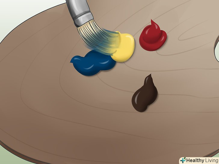 Змішайте фарби. вирішіть, які кольори ви будете використовувати. Змішайте фарби на палітрі або на тарілці. Можна змішувати фарби і прямо на полотні, але так можна зробити помилки.