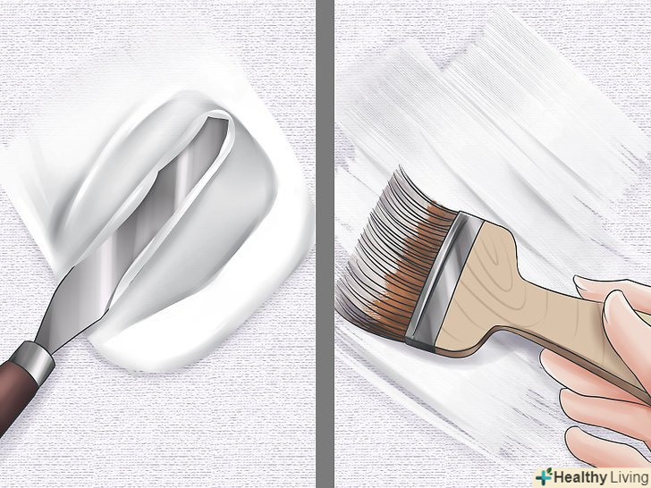 Створіть фактурний фон. найпростіше нанести професійний гессо - щільну основу з консистенцією гелю. [6] Наносите його як фарбу або намажте на полотно спеціальним ножем, якщо гессо дуже густий. Це допоможе вам створити потрібну фактуру поверхні.- Можна залишити полотно гладким. Немає ніяких правил щодо фактури полотна, на якому ви будете працювати, і багато художників пишуть по "голому" полотну.