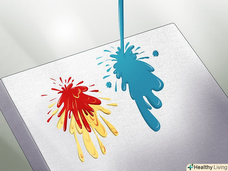 Налийте фарбу на полотно. це один із способів створення абсолютно особливого довільного зображення. Лийте стільки фарби, скільки вважаєте за потрібне.- Можна лити або видавлювати фарбу з різної висоти. Якщо лити з великої відстані, вийдуть бризки, а якщо тримати фарбу близько до полотна, можна домогтися більшої точності.