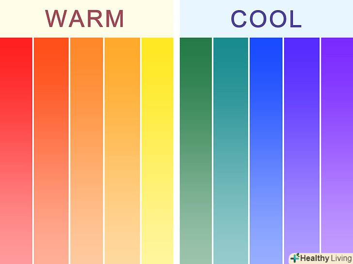 Дізнайтеся, що таке теплі і холодні кольори. теплі кольори (червоний, жовтий, помаранчевий і всі відтінки цих кольорів) створюють відчуття руху в просторі. Холодні кольори (синій, зелений, бузковий і всі відтінки) створюють відчуття відступу назад або нерухомості. Ці кольори заспокоюють. [5]- Чорний, білий і сірий вважаються нейтральними кольорами.