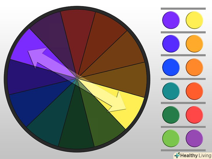 Купуйте колірне коло. колірний круг - це спеціальний інструмент, на якому розташовані кольори. Він корисний для розуміння зв'язків між квітами: що добре виглядає поруч, що ріже око і так далі. [3]- Знайти колірне коло можна в магазині художнього приладдя, в магазині товарів для рукоділля або у відділі з фарбами в гіпермаркеті.