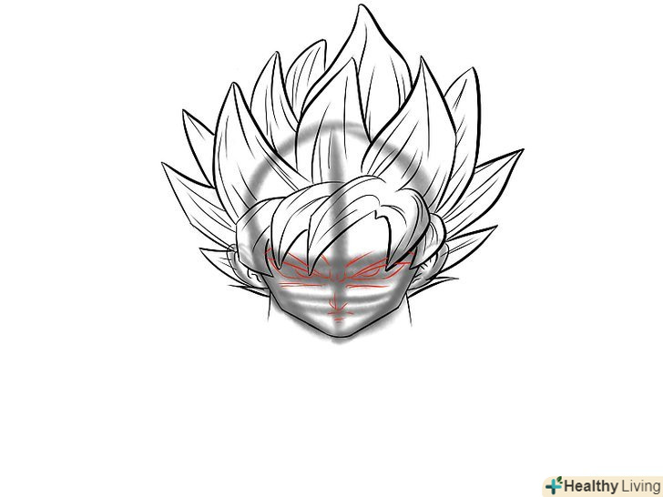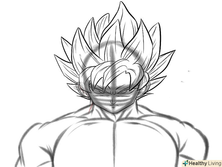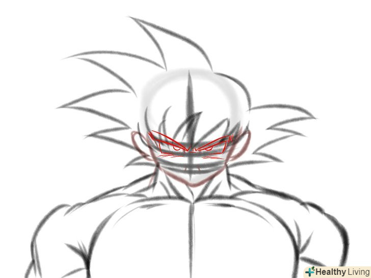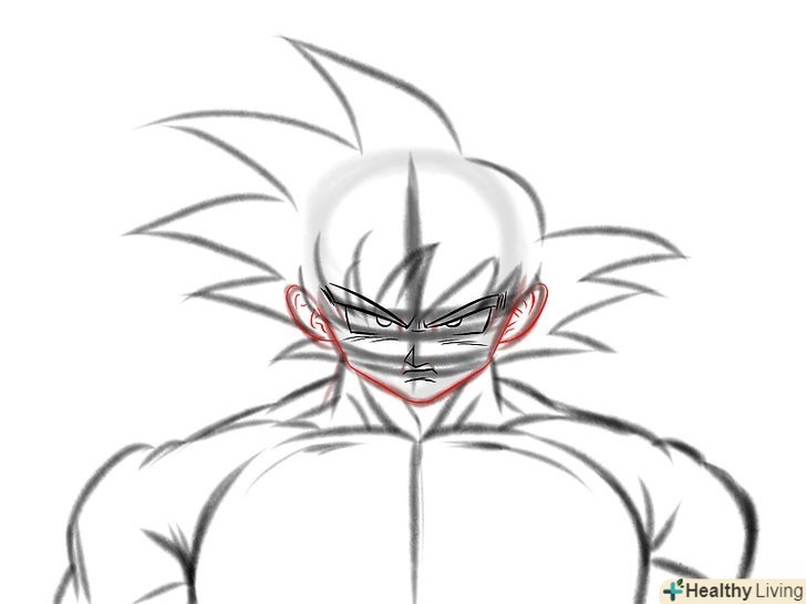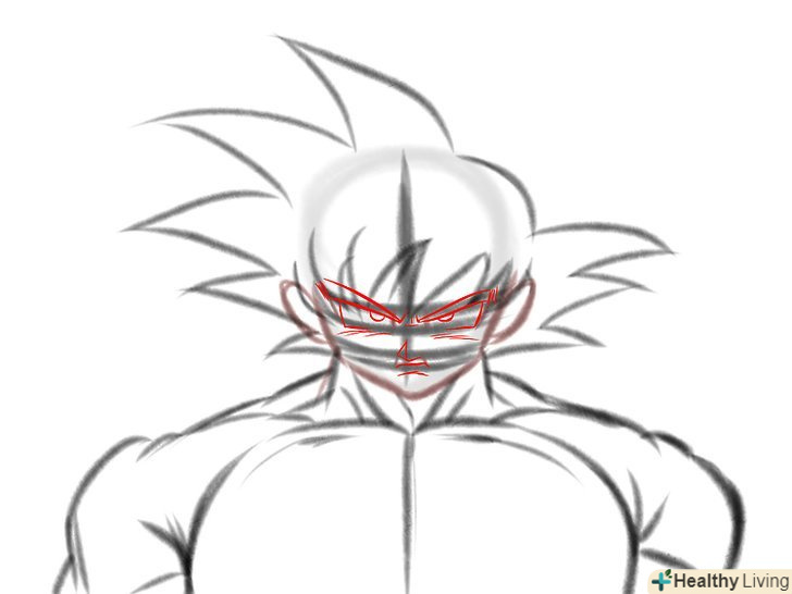 Прорисуйте риси обличчя. Так як Гоку в режимі супер саяна, слід надати йому більш суворий вигляд.