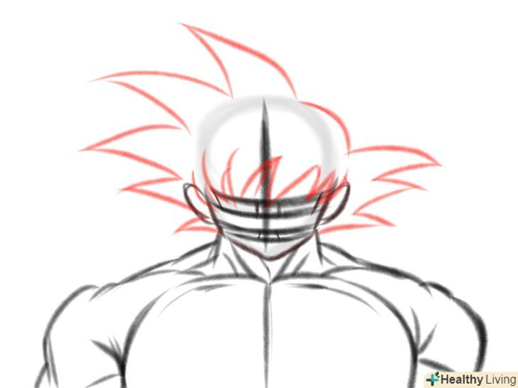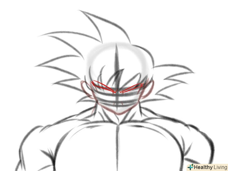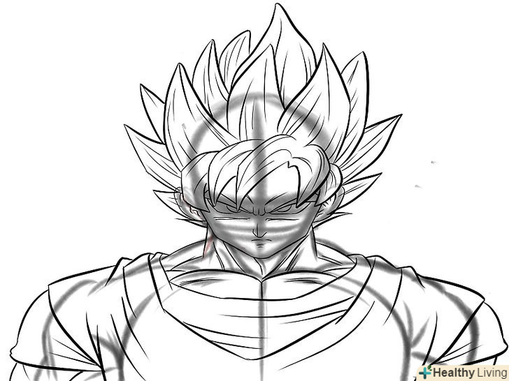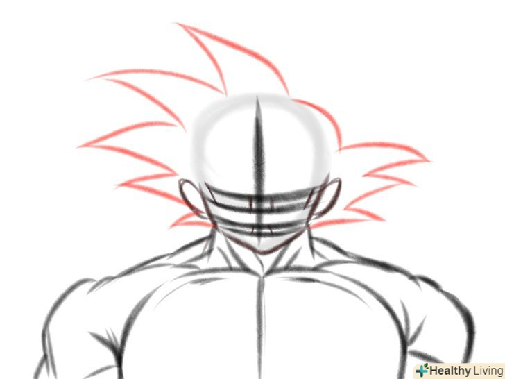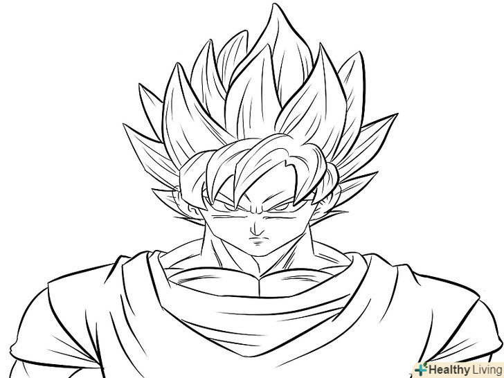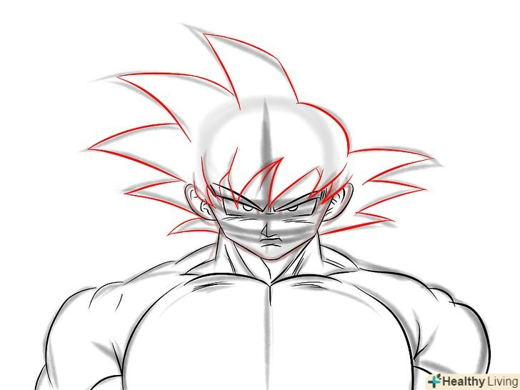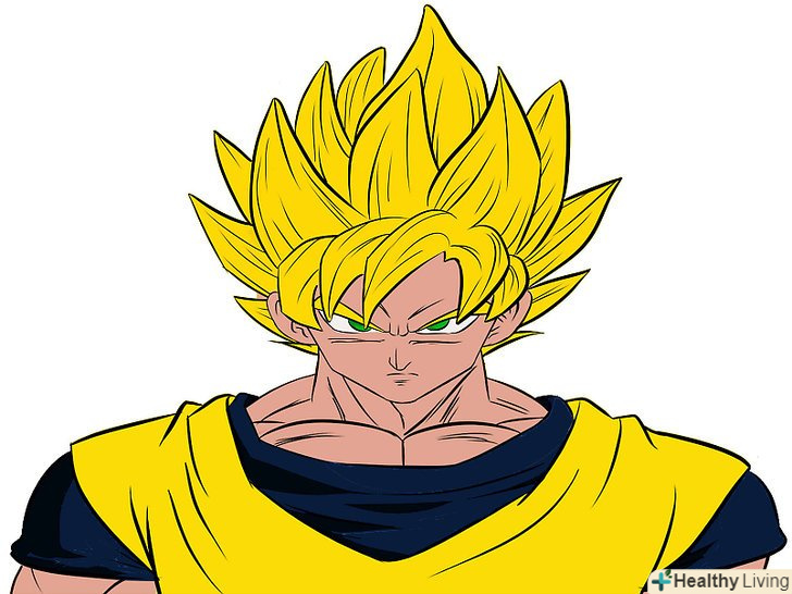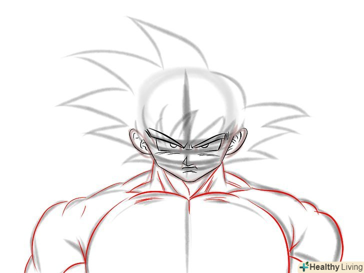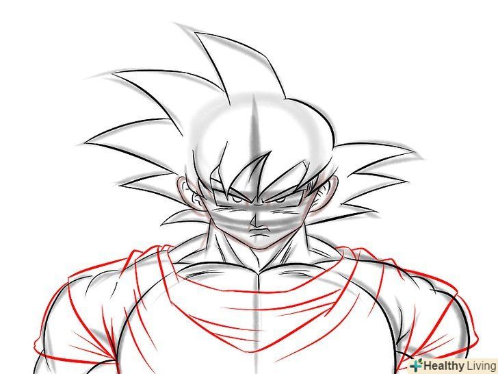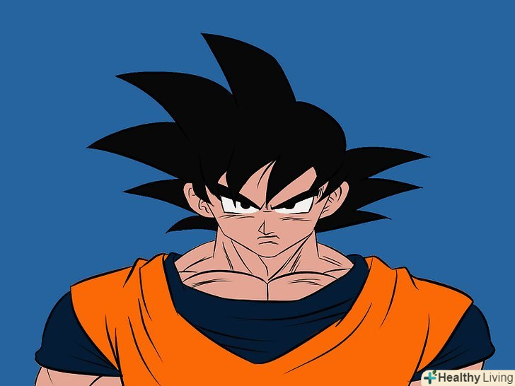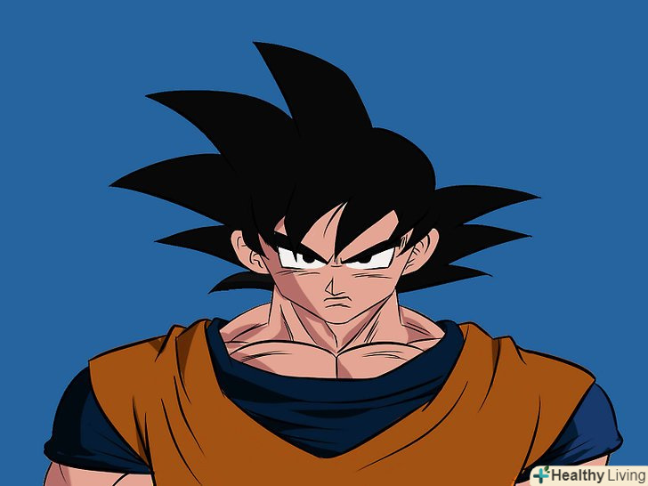 М'язисту шию Гоку. Зазвичай ми малюємо шию товщини, достатньої, щоб утримати голову, так як більшість героїв аніме чоловічої статі мають худорляву статуру і високий зріст, але малювання Гоку - зовсім інша справа. Він найсильніший позитивний герой всіх часів, у нього м'язисте тіло, яке підкреслює його силу.