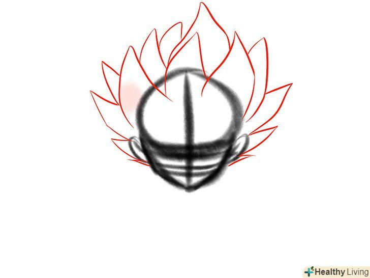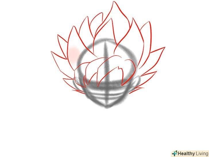 Намалюйте перший шар зачіски Гоку супер саяна. у звичайної форми Гоку зачіска складається з великих скошених злегка вигнутих гострих стирчать локонів. Його зачіска не стає більше, поки він не переходить до певних форм супер саяна.