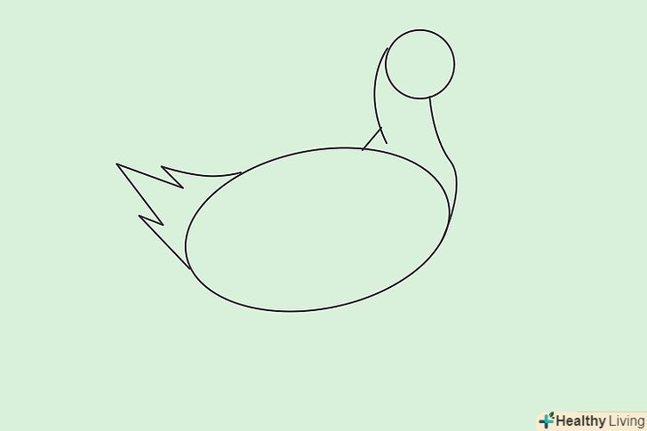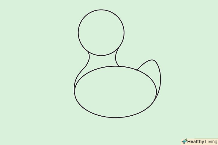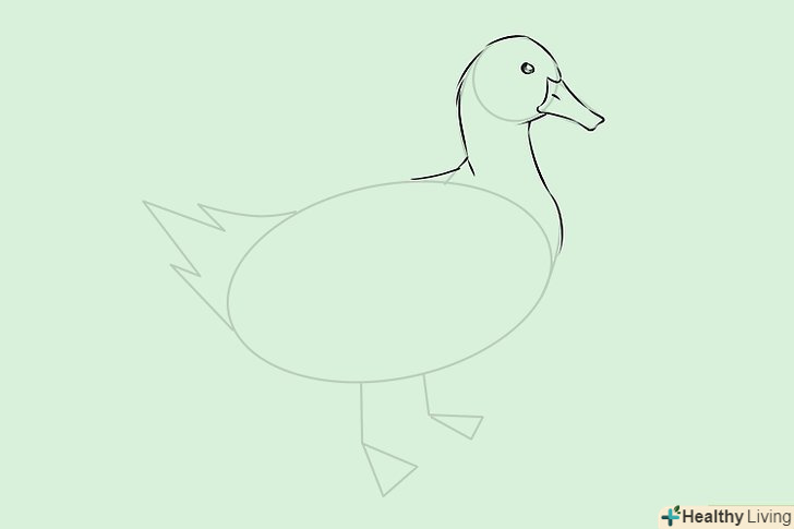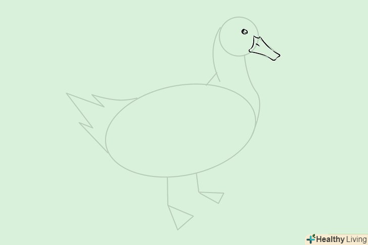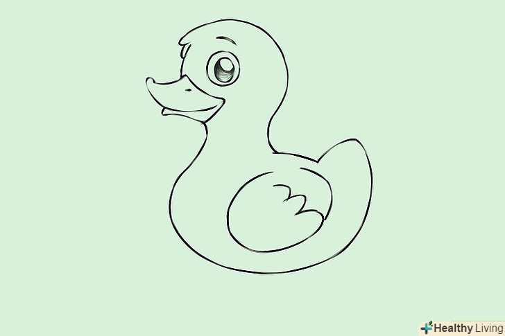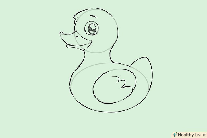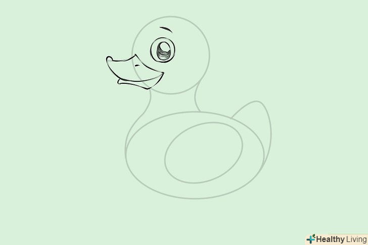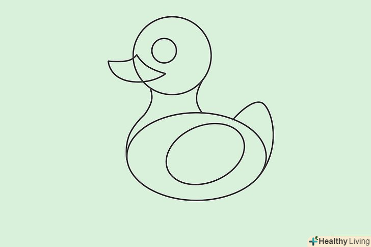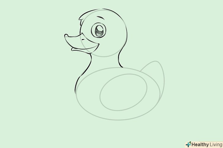 Додайте всередині кола ще один, але меншого розміру - для ока. намалюйте дзьоб спереду там, де намальований очей. Для крил качки додайте похилу форму у вигляді яйця всередині великого овалу.