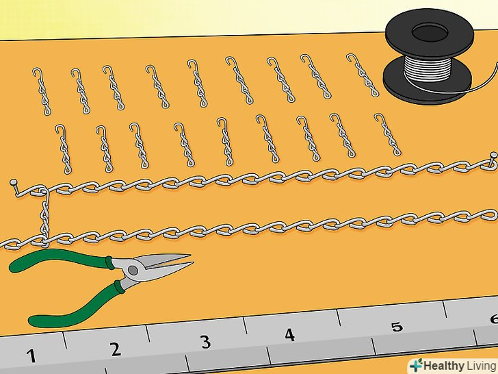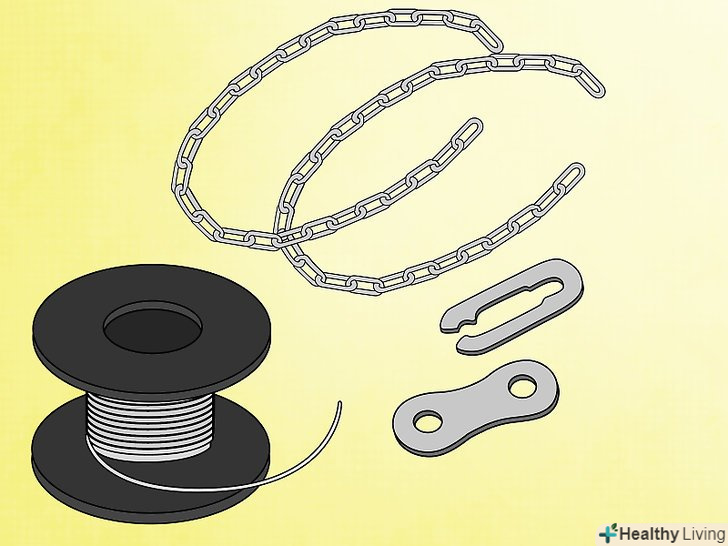 Зафіксуйте шматочки ланцюга, обмотані навколо обода і покришки, металевими кліпсами або дротом.також можна стягнути ланцюг болтами і гайками.