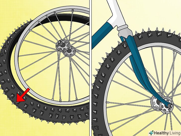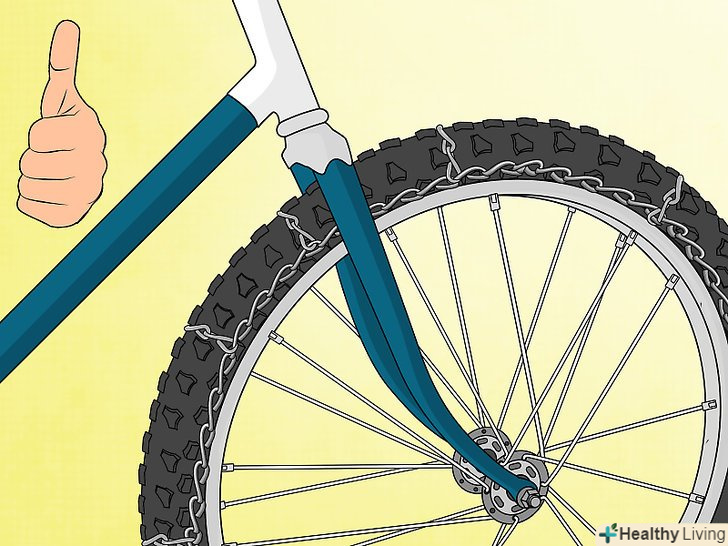 - Це не дуже безпечна модифікація велосипеда, так що ви робите її на свій ризик. Якщо на вулиці занадто слизько, щоб їздити на велосипеді без зимової гуми, можливо, там занадто слизько, щоб їздити на велосипеді взагалі. В такому випадку краще вибрати інший вид транспорту.
