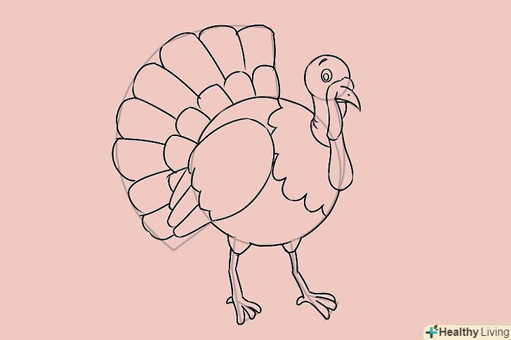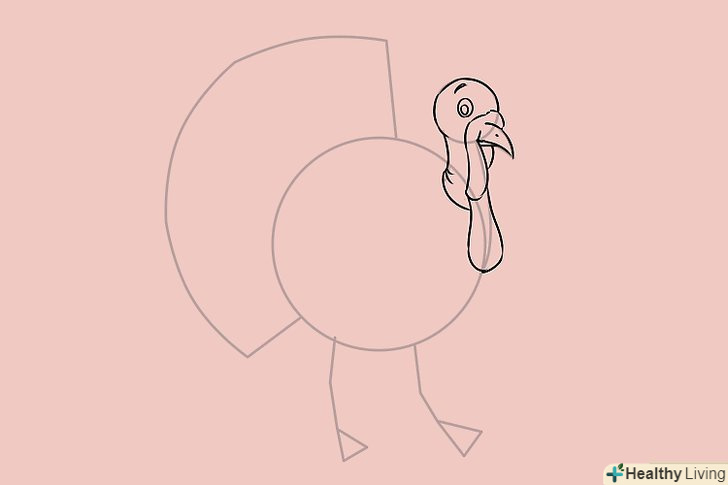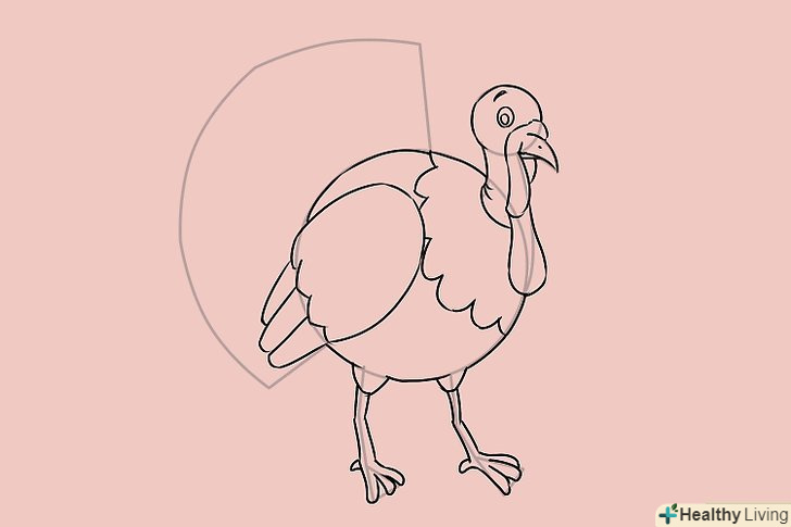 Намалюйте криву лінію з лівого боку індички і фігуру, схожу на Віяло, для хвоста, прикріплену до кривої.