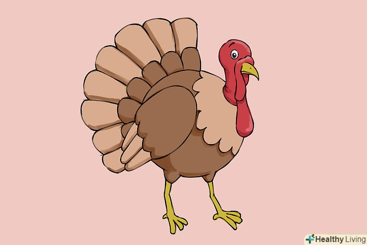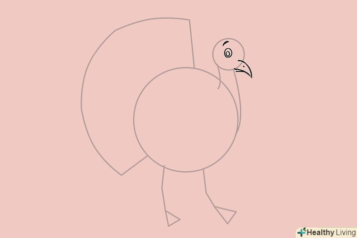 Намалюйте очей - для цього додайте два маленьких кола на голові. додайте криву лінію для брів. Намалюйте рот і точку для ніздрі на дзьобі індички.