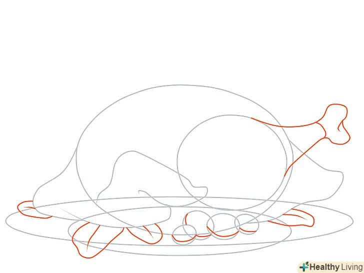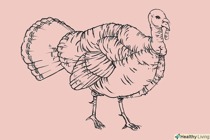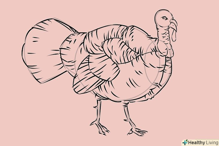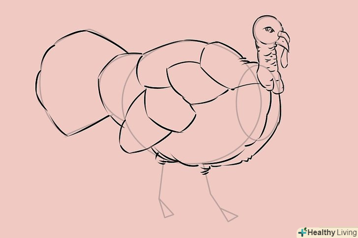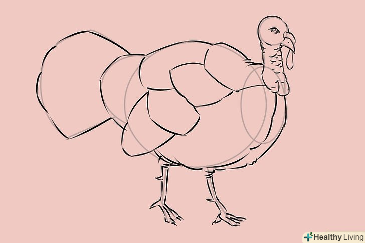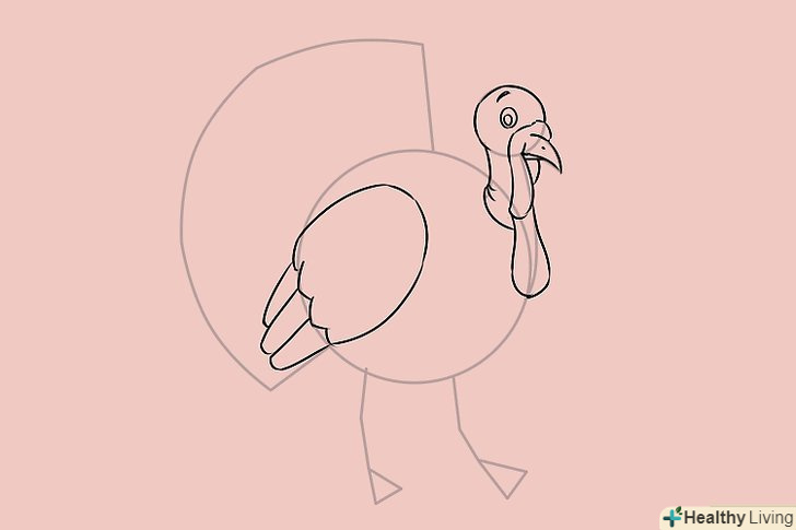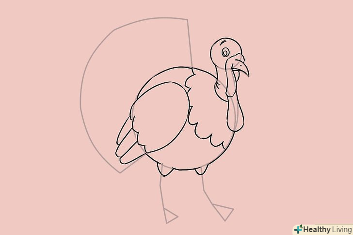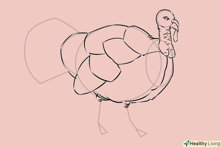 Намалюйте контур тулуба, приділяючи увагу малюнку пір'я. зауважте, що задня частина індички трохи горбиста, тому там ви теж можете намалювати кілька контурів пір'я.