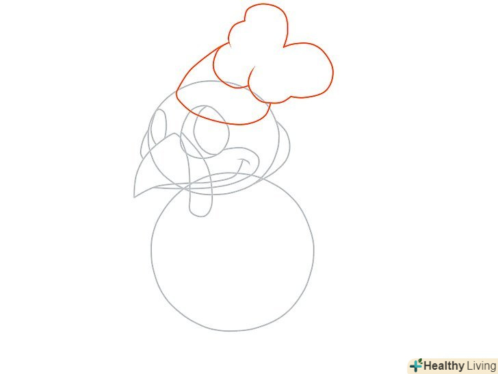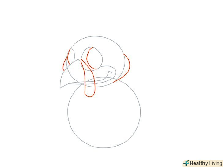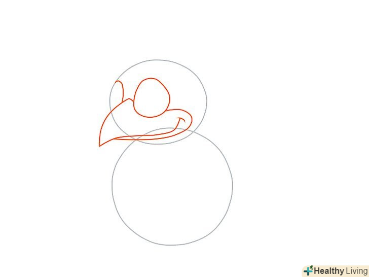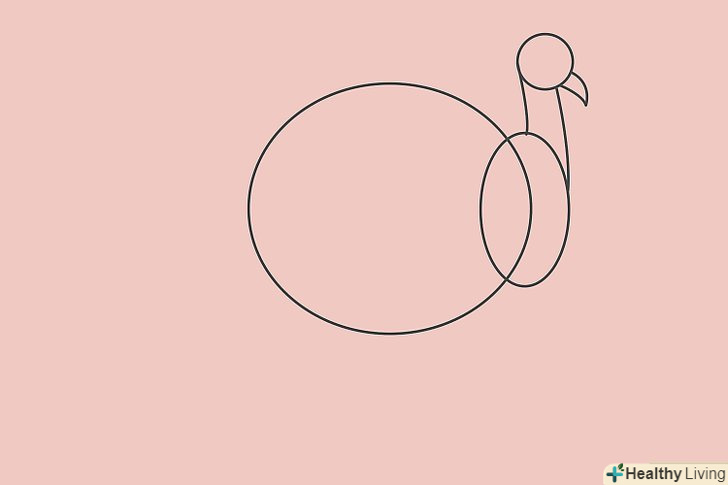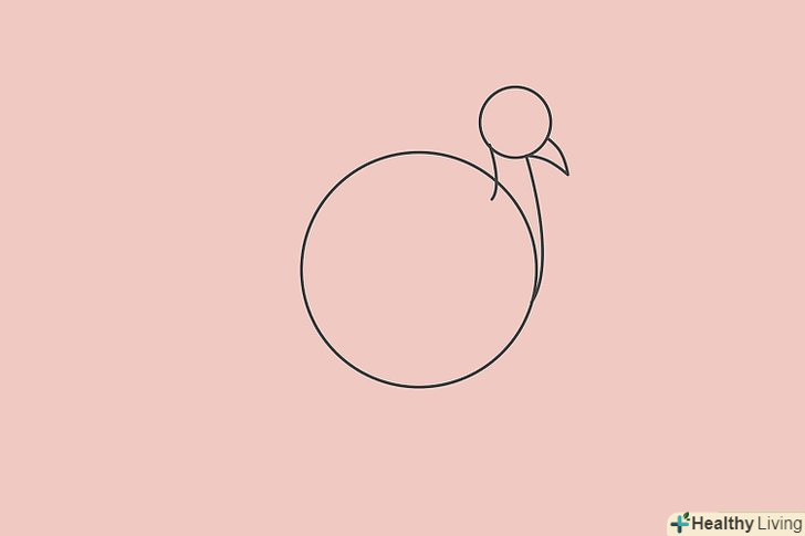 Намалюйте невелике коло праворуч від кола більшого розміру. З'єднайте два кола за допомогою двох кривих ліній так, щоб це було схоже на майбутню голову, шию і тулуб. Додайте дві вигнуті лінії на голові так, щоб вийшов дзьоб.