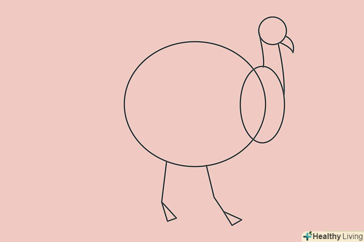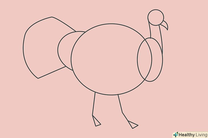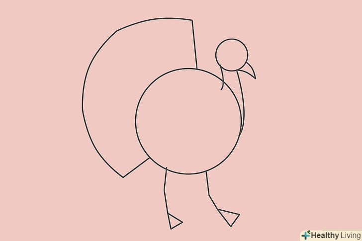 Намалюйте дві незграбні лінії, прикріплені до тулуба. додайте по трикутнику до кожної лінії, щоб вийшли лапи індички.