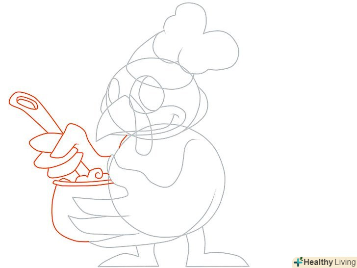 Намалюйте праве крило, яке тримає поварешку. намалюйте також казанок або каструлю, яку індичка тримає в лівому крилі.