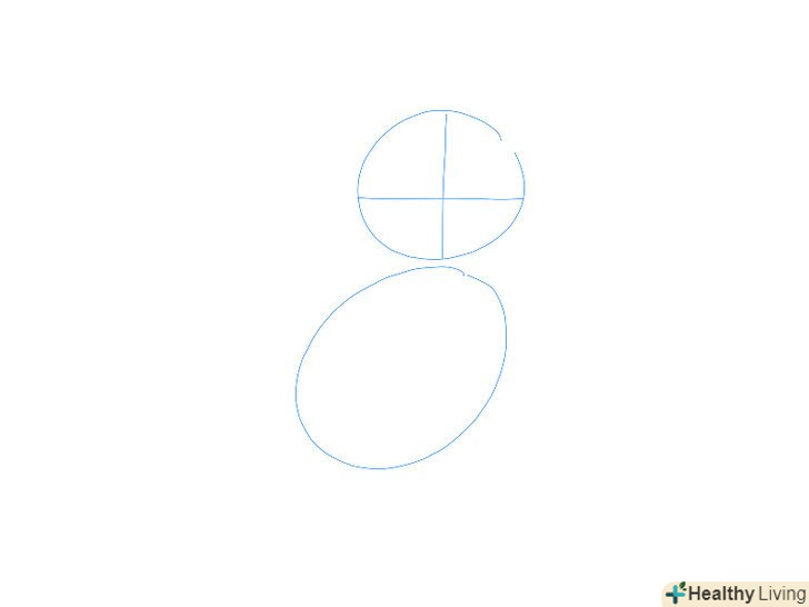 Намалюйте коло для голови і овал для тіла. у колі додайте перехрестя як орієнтир для обличчя.