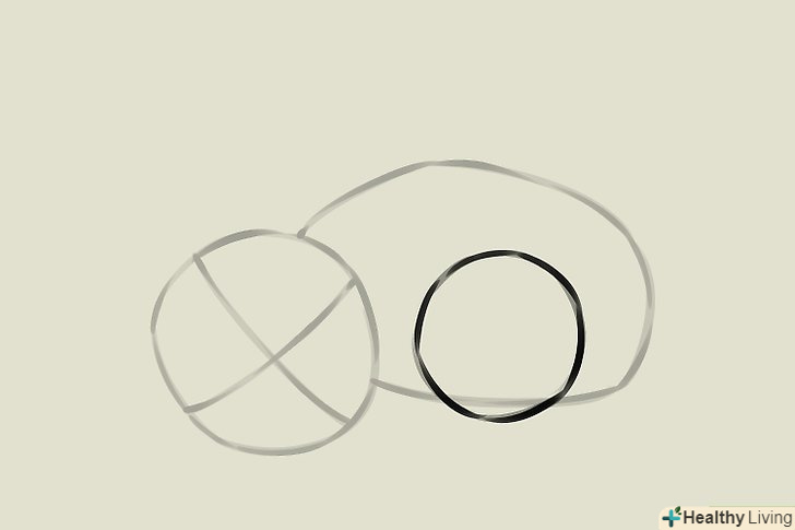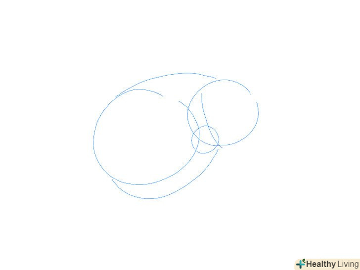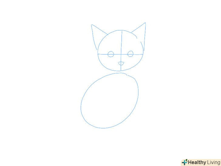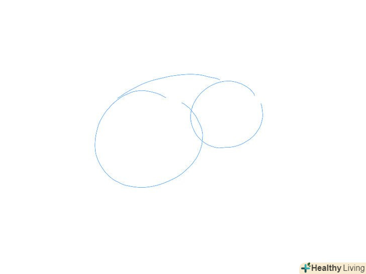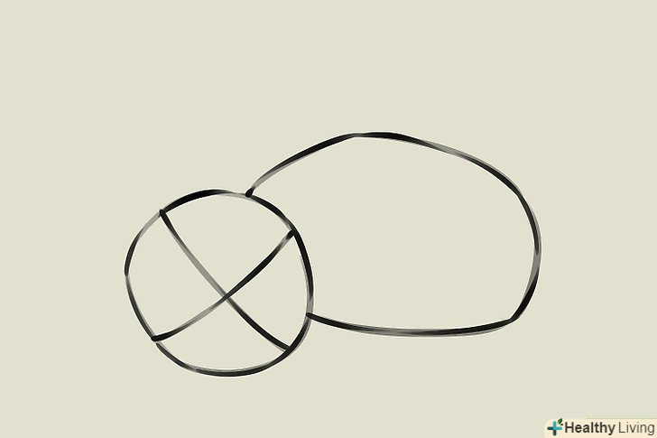 Намалюйте коло для голови і овал для тулуба. вони повинні знаходитися близько один до одного. Зігнутою лінією з'єднайте тулуб з головою.