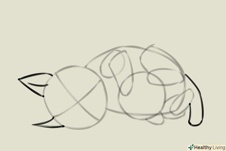 Додайте кошеня вуха з кожної сторони голови. Намалюйте приблизні обриси кінцівок кошеня.