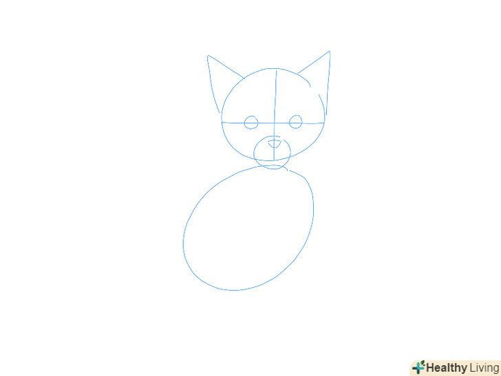 Використовуючи хрест всередині форми голови в якості орієнтира, намалюйте два невеликих кола для очей. Додайте ніс і рот.