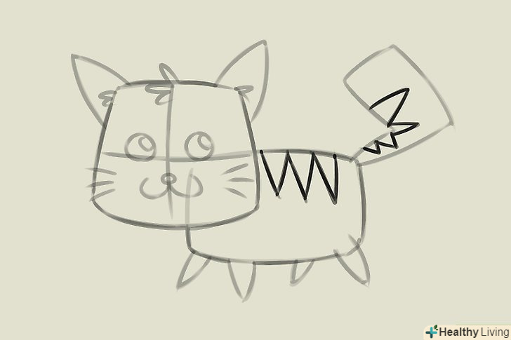 Намалюйте такими ж м'якими короткими штрихами тіло і хвіст кошеня.