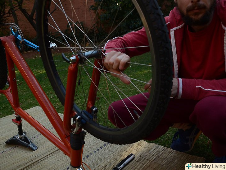 Підтягніть спиці.якщо колесо має опуклі або увігнуті місця, підтягніть спиці в опуклому місці і послабте в увігнутому, зазвичай воно знаходиться навпроти опуклого. Перш ніж затягувати спиці в опуклих місцях, послабте їх в увігнутих.