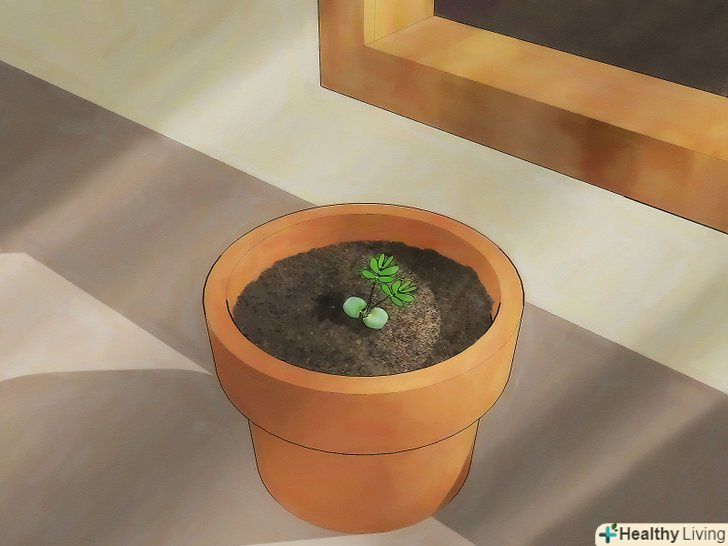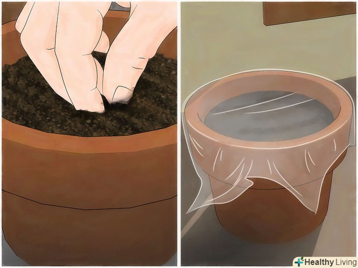 Посадіть насіння. посадіть насіння приблизно на глибину 3 мм в квітковий горщик або чашку з грунтом .- Купуйте хороший грунт для кімнатних рослин з перлітом, щоб забезпечити хороший дренаж і циркуляцію повітря між корінням.