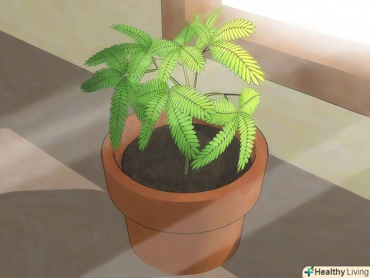 Поставте горщик з паростками мімози сором'язливою в тепле місце. зніміть плівку і поставте горщик з паростками в тепле і добре освітлене місце. [3]