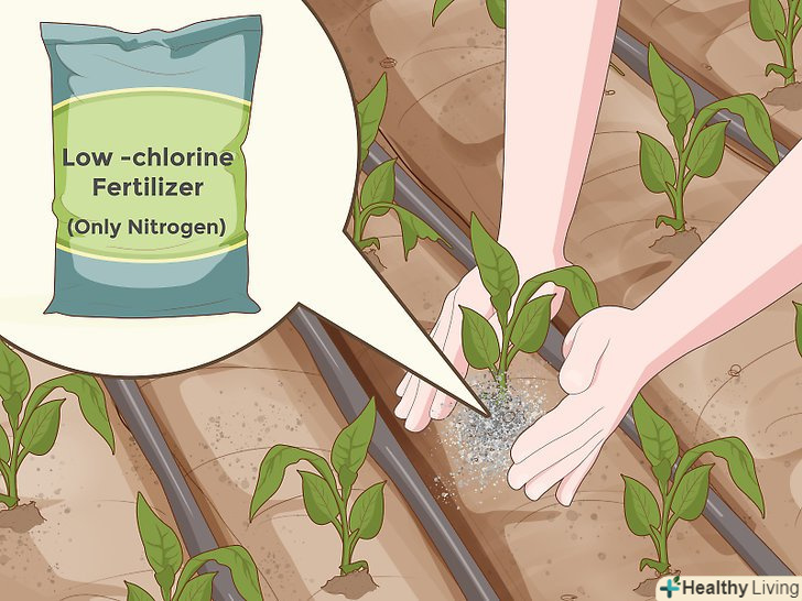 Нанесіть добриво з низьким вмістом хлору, до складу якого входить азот у формі солі. також підійдуть добрива для помідорів, перців і картоплі. [13]- Надлишок добрива небезпечний, оскільки він може порушити процес накопичення солі. Кількість добрива буде залежить від концентрації добрива, від характеристик грунту, втрати поживних речовин через промивання грунту та інших суб'єктивних факторів. На упаковці добрива будуть наведені інструкції-там ви знайдете потрібну дозування.